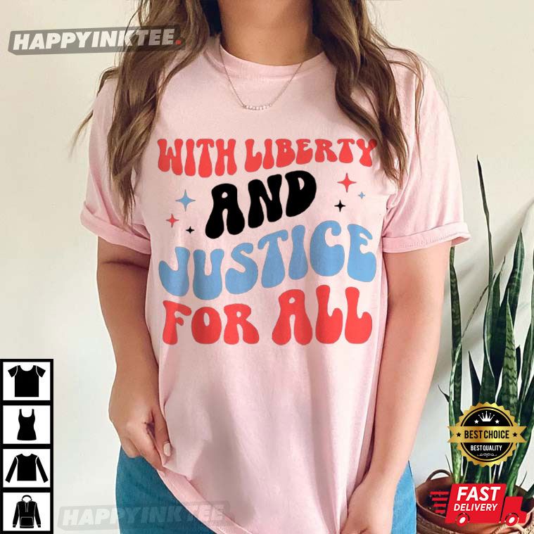 With Libery And Justice For All Retro 4th Of July T-Shirt