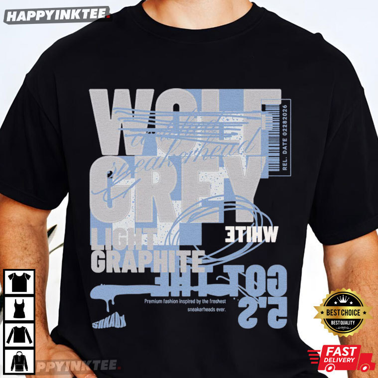 The Wolf Grey Light Graphite Grey to Match Jordan 5 Sneaker T-Shirt is designed specifically for sneaker lovers who appreciate coordinated streetwear style — Inspired by the iconic color palette seen in popular sneaker releases, this graphic tee blends modern typography, urban design elements, and muted grey hues that go well with Light Graphite and Wolf Grey sneakers, particularly those from the iconic Jordan 5 collection.
