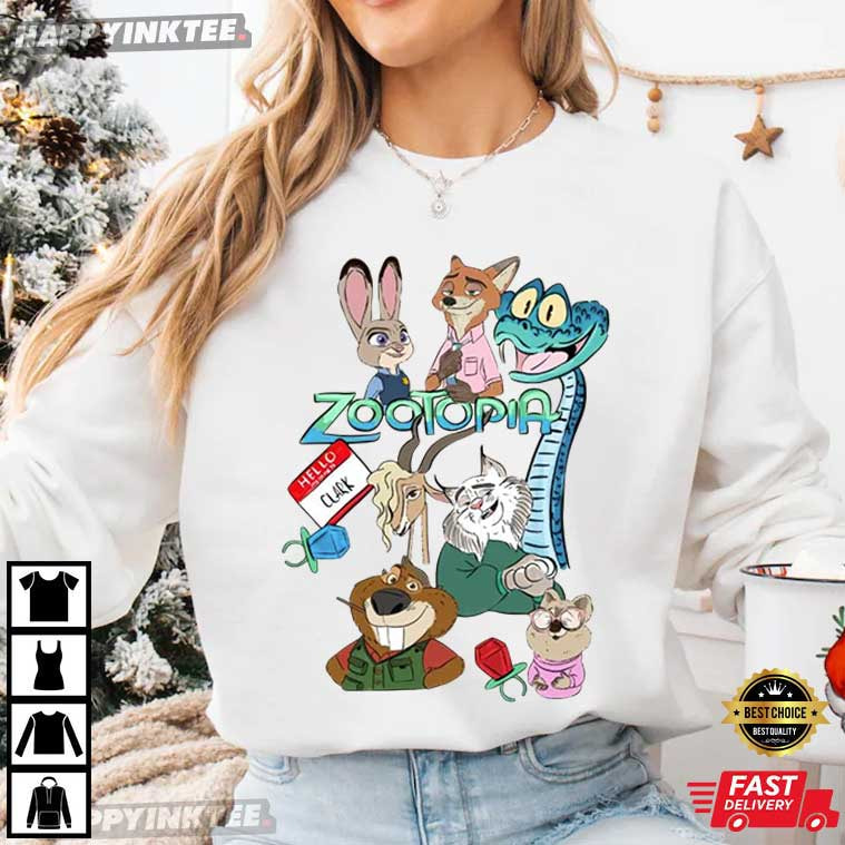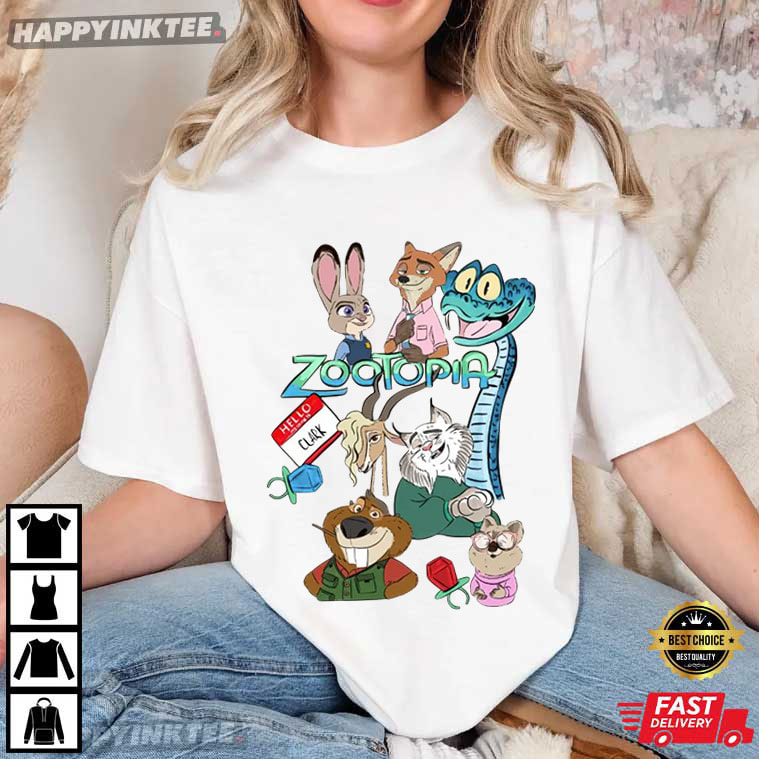 Bring the colorful energy of Zootopia to your everyday style with this Zootopia Characters Nick Wilde Judy Hopps Disney Cartoon T-Shirt, featuring fan-favorite characters like Judy Hopps, Nick Wilde, and a lineup of the film’s lovable supporting cast. This Zootopia shirt is ideal for Disney fans, animation enthusiasts, or anyone looking for a happy and nostalgic graphic tee because of its vibrant colors, expressive character art, and comfortable fit.